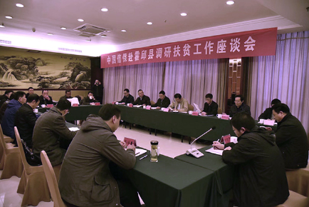 在與霍邱縣委、縣政府的扶貧工作座談會上,霍邱縣委書記劉勝匯報了霍邱縣2017年脫貧攻堅工作進展情況,縣教育局介紹了中國信保教育扶貧助學金落實情況,霍邱安糧公司介紹了有關工作進展情況,中國信保掛職干部匯報了掛職工作體會,相關鄉鎮負責人介紹了鄉鎮扶貧基本情況。